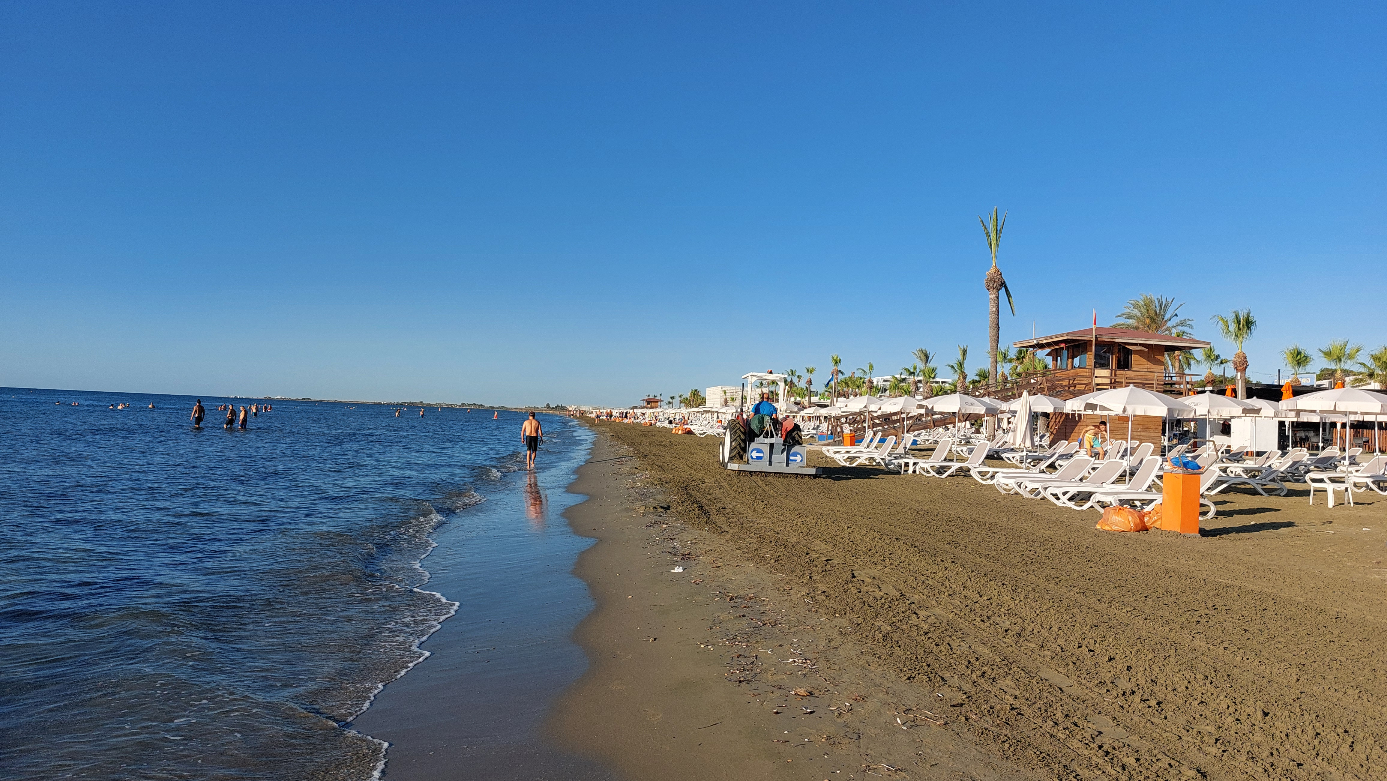 Plaja Finikoudes este extrem de ușor de accesat și aici vei avea cele mai multe opțiuni de cazare în imediata apropiere. Șezlongurile au prețuri stabilite de primăria orașului și din acest motiv sunt mai mici decât cele practicate în multe stațiuni din România: 2,5 euro șezlongul + 2,5 euro umbrela. Practic, două șezlonguri și o umbrelă vor costa 7,5 euro (38 de lei).