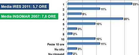 Pe de alta parte, in 2007, romanii care se uitau la televizor in timpul serviciului faceau acest lucru in medie circa 7,8 ore pe zi, conform Insomar.