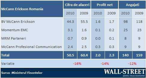 McCann Erickson Romania este format din agentiile B.V. McCann Erickson (creatie si media), Momentum (organizare de evenimente), MRM Parteneri (comunicare digitala si marketing direct) si McCann PR (relatii publice).