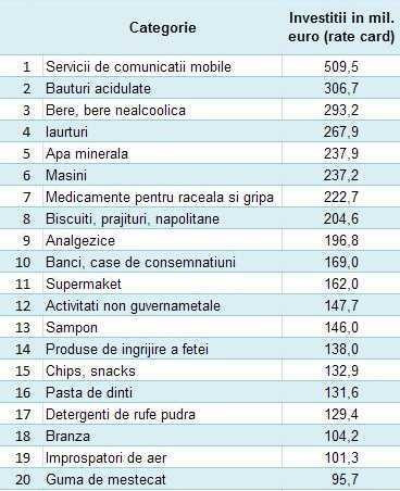 Investitiile la rate card in publicitate sunt mult mai mari fata de piata neta de publicitate, estimata anul trecut la circa 300 de milioane de euro, intrucat sumele nu includ discounturile care sunt de zeci de procente.