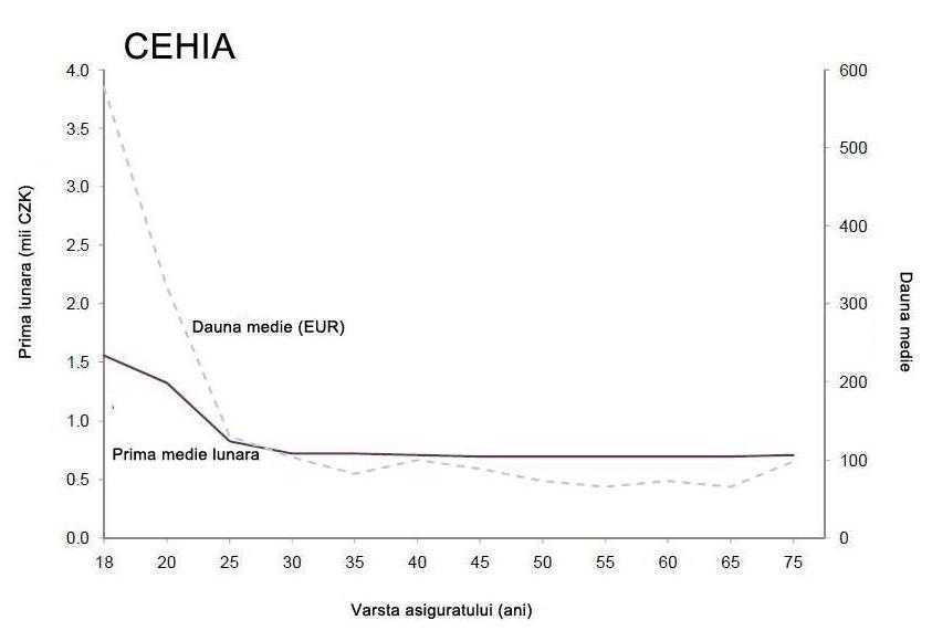 In toate tarile incluse in studiu nivelul sporit al daunei medii aferent soferilor tineri se regaseste intr-un nivel mai ridicat al primelor de asigurare pe aceasta categorie de varsta. Prezentam in continuare reprezentarile grafice din cadrul studiului Oxera – informatiile prezentate in grafice sunt valorii medii.