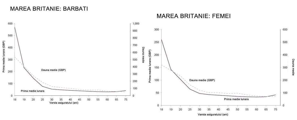 O analiza din 2007 a Institutului Britanic de Actuariat, citata de studiul Oxera, a simulat eliminarea criteriilor de varsta pentru calculul asigurarilor de tip RCA. Rezultatele arata faptul ca neluarea in calcul la stabilirea tarifului de prima pentru asigurarile auto a factorului varsta, poate conduce atat la efecte negative asupra eficientei economice a asiguratorilor, cat si la cresteri importante a primelor platite de soferii din alte categorii de varsta unde daunalitatea este mult mai scazuta.