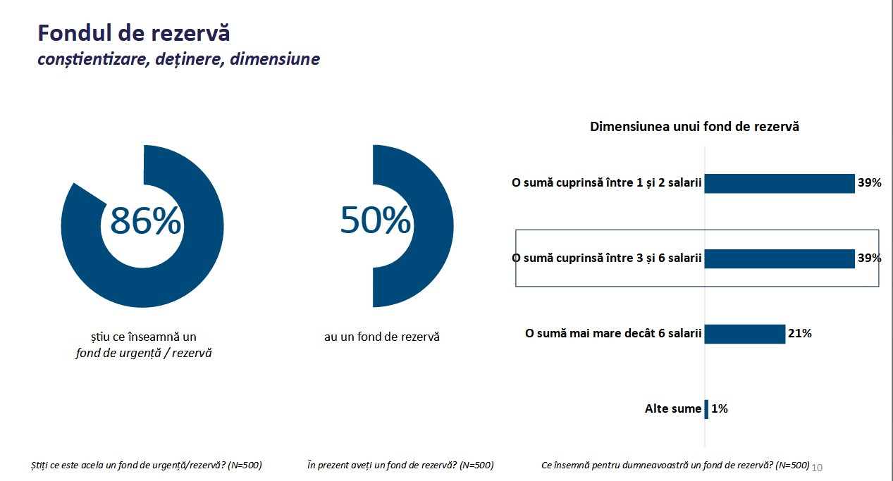 Când vine vorba de economisire, scopul principal pentru majoritatea românilor este crearea unui fond de urgență (75%). Totuși, 58% dintre cei care nu reușesc să pună bani deoparte declară că și-ar dori să implementeze un plan de economisire lunar.
