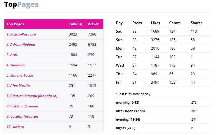 In ceea ce priveste Facebook, primele 3 pozitii erau ocupate in luna mai de catre Cetin Ametcea, Simona Tache si Cristina Bazavan. Luna aceasta, pagina de Facebook a lui Razvan Pascu ajunge pe prima pozitie, locurile 2 si 3 ocupandu-le paginile de Facebook ale lui Adrian Hadean si Cetin Ametcea.
