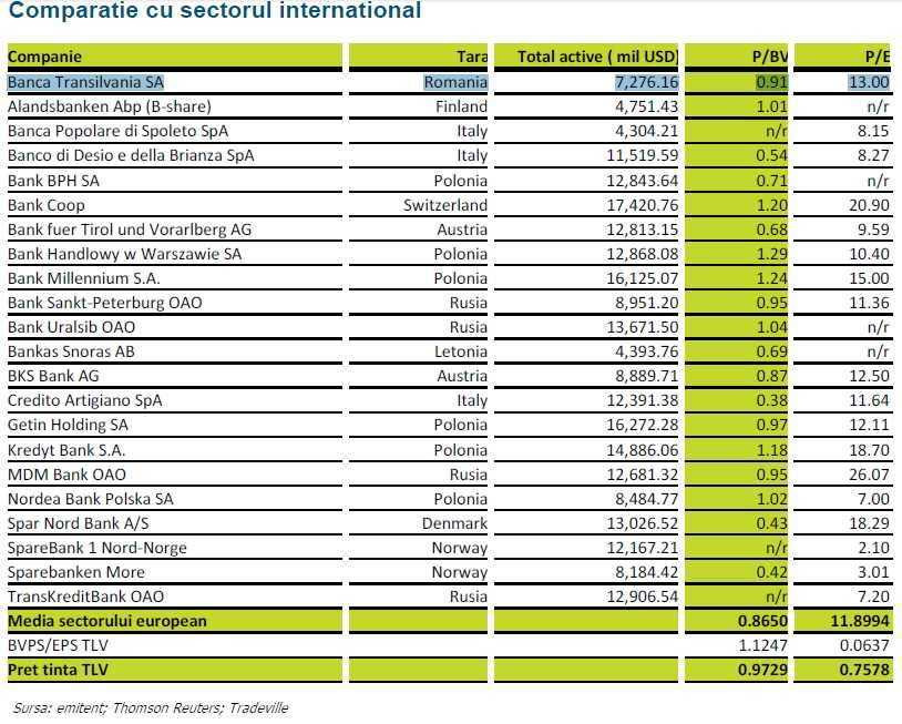 Analistii firmei de brokeraj considera ca in pofida noilor tensiuni de pe pietele financiare internationale si a gradului ridicat de incertitudine de pe piata interna, Banca Transilvania poate fi apreciata ca solida din punctul de vedere al nivelului capitalizarii, solvabilitatii si lichiditatii, care erau conforme cu cerintele prudentiale la sfarsitul S1 2011.