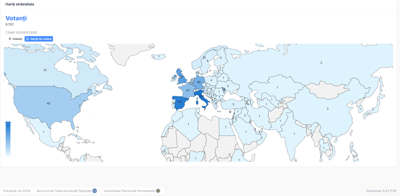 Participare mai redusă la vot s-a înregistrat în Argentina, Azerbaidjan, Cuba, Etiopia şi Republica Chile - zero alegători.