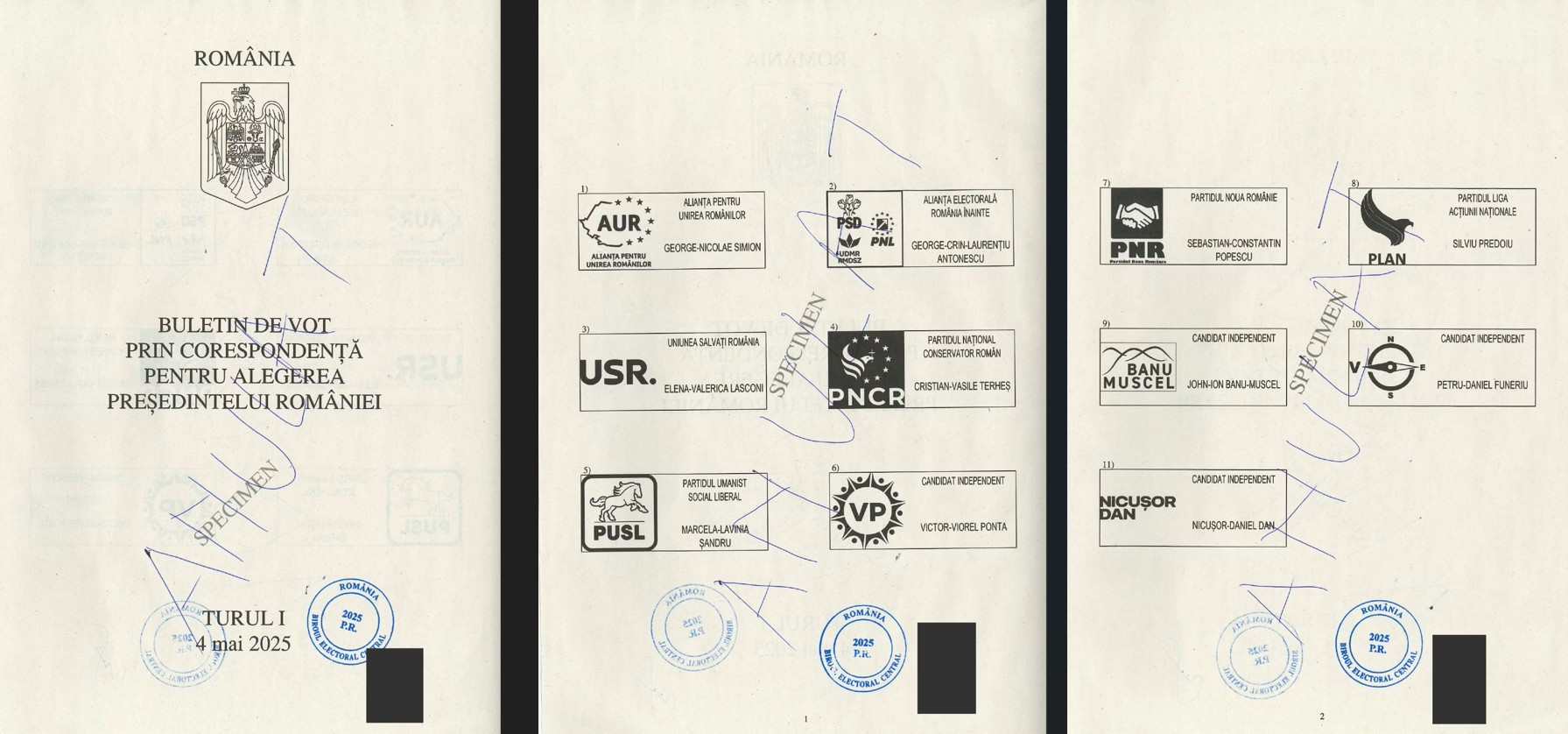 Prima variantă include buletinele pentru secțiile de votare prin corespondență.