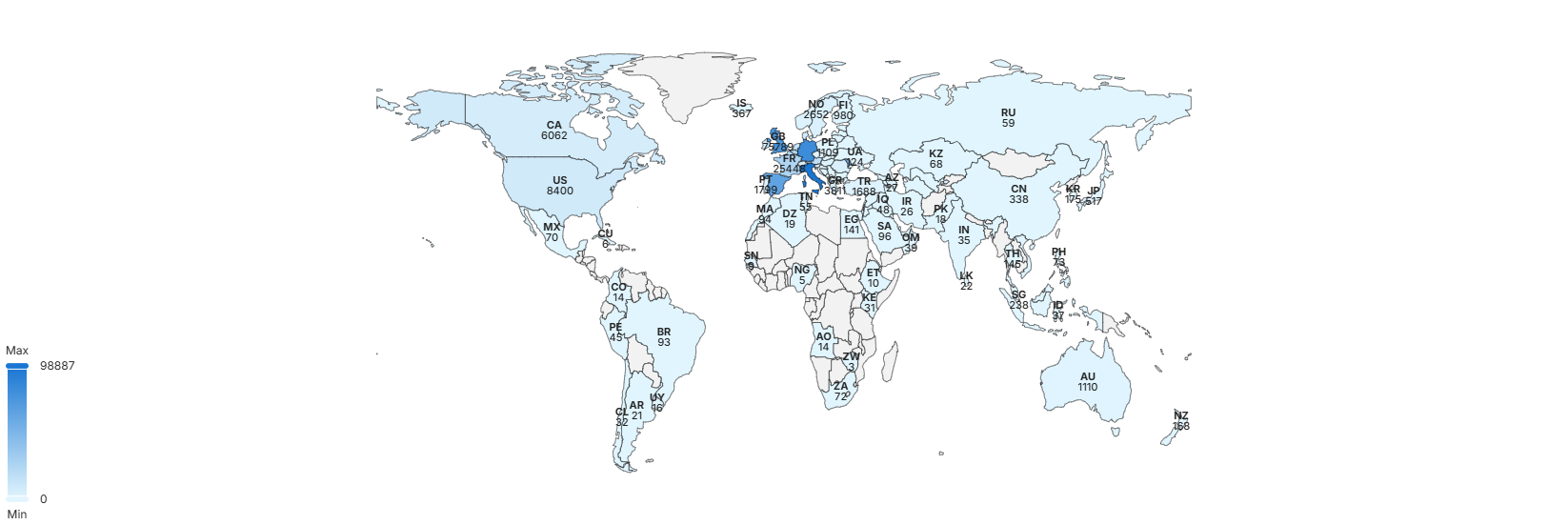 Dintre țările în care s-a votat cel mai mult până la ora 16:00, cei mai mulți făcut-o în Italia, la fel ca și în urmă cu două ore, unde 8.186 își exprimaseră deja dorința de vot. Pe locul 2 se află Germania, unde au votat până la ora menționată 7.147 de alegători.