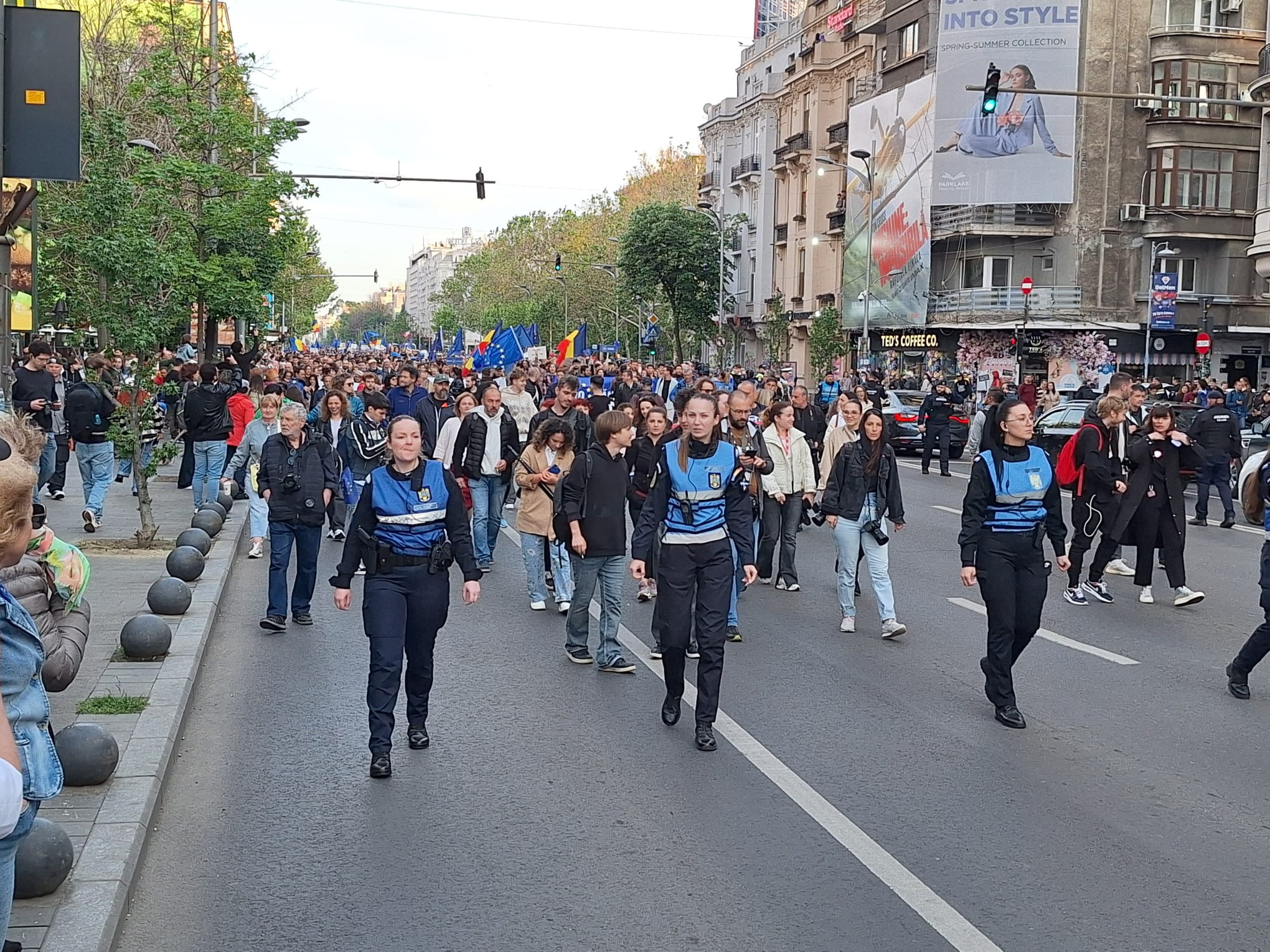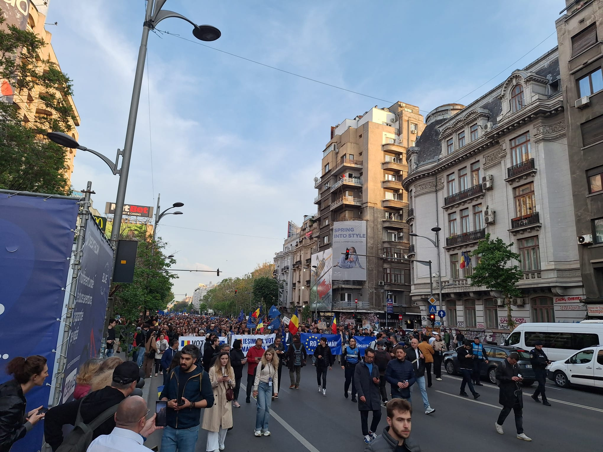 Mitingul pro-Europa a început în București, mii de persoane pornind din centru, de la Piața Universității, spre Piața Victoriei. Marșul este organizat de Rezistenţa şi Iniţiativa România.
