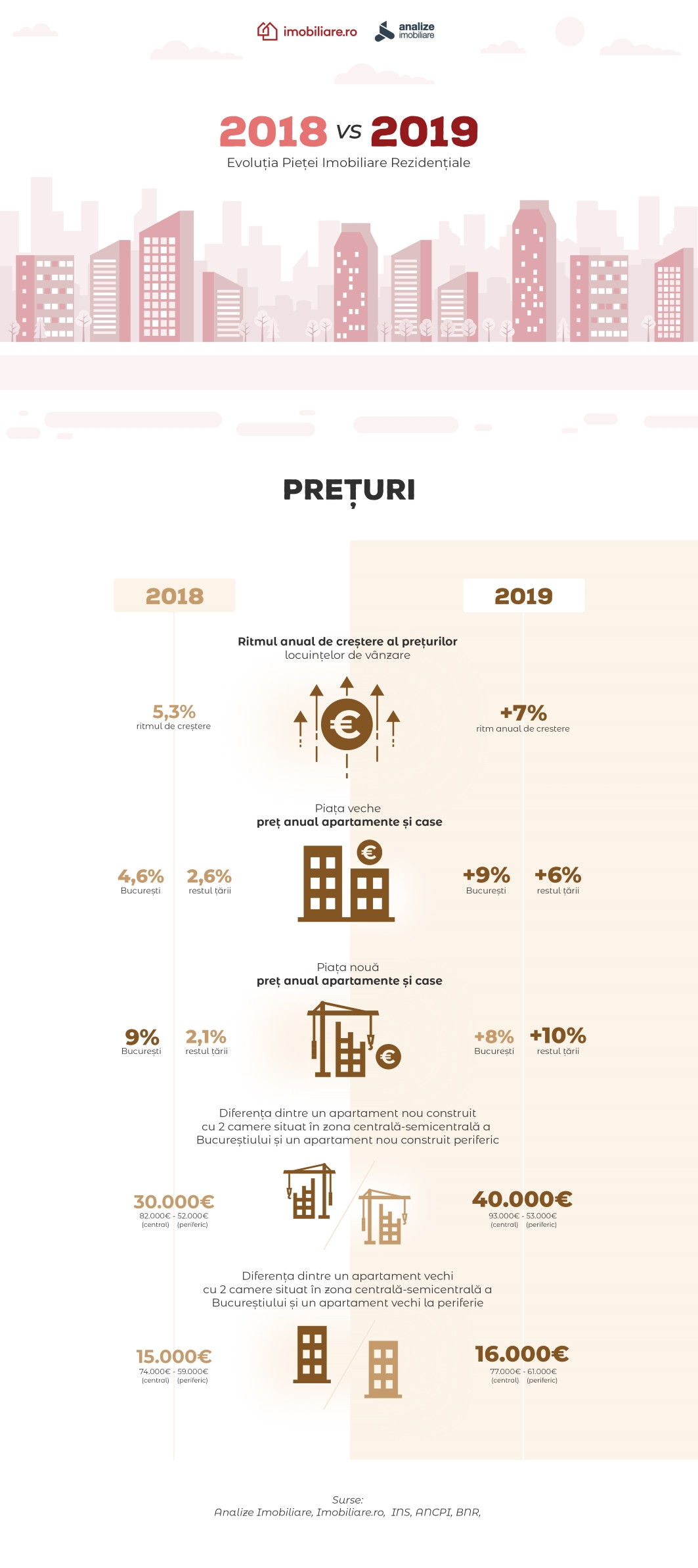 Astfel, in opinia sa, "locuintele vechi au consemnat un plus de 9% in Bucuresti, fata de 6% in restul tarii; unitatile locative nou-construite, pe de alta parte, s-au apreciat cu 8% in Bucuresti si, respectiv, cu 10% in restul tarii. Spre comparatie, in ultimul trimestru din 2018 locuintele vechi erau cu 4,6% mai scumpe in Capitala si, respectiv, cu 2,6% in rest, iar cele noi erau cu 9% mai scumpe in Bucuresti si cu 2,1% in restul tarii".