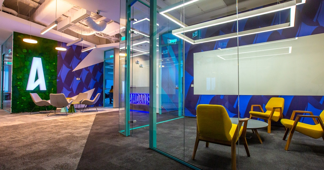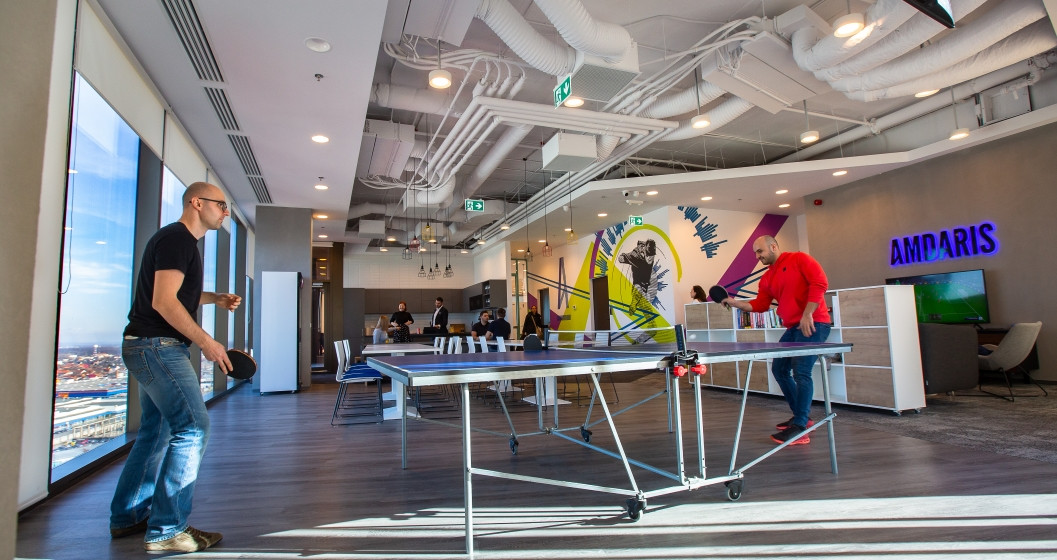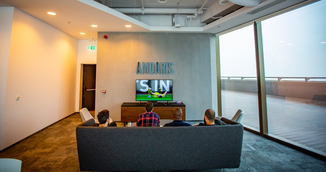 În sediul companiei de IT Amdaris, nu există birouri pentru directori sau alte persoane. Sunt toți în același „open space” de la etajul 12 al clădirii United Business Center 3 din Iulius Town Timișoara, unde s-au mutat în luna ianuarie a acestui an, ca și restul echipei. Într-o zonă mai „retrasă”, din cauza informației sensibile pe care o gestionează, dar nu există birouri aparte pentru nimeni, indiferent de funcție.