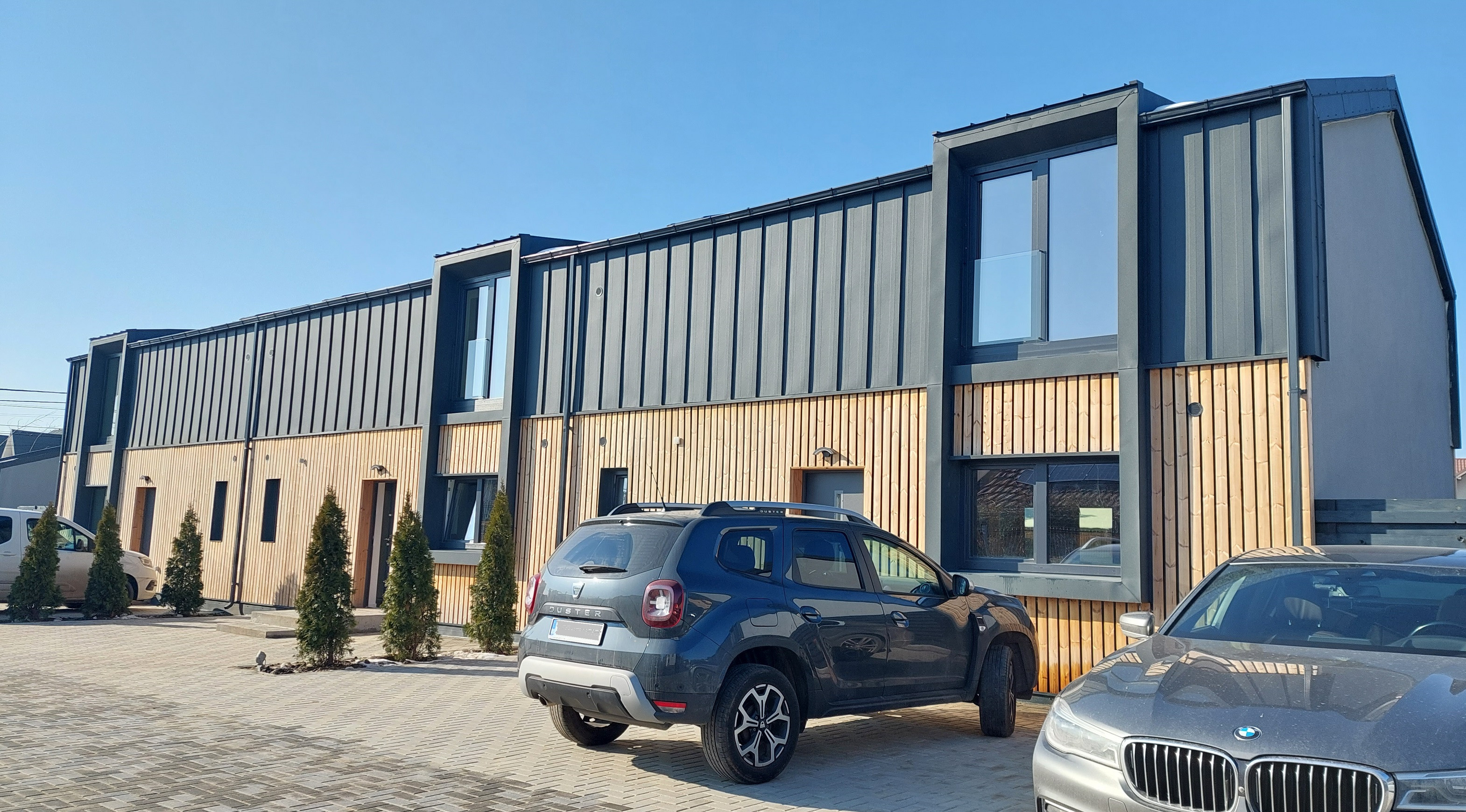 Fiecare locuință are trei locuri de parcare dedicate, iar aleea din fața clădirilor este cu sens unic, intrarea în complex făcându-se de pe o stradă, iar ieșirea pe o altă stradă.
