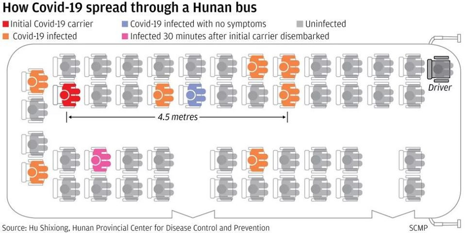 Până în prezent, autoritățile spuneau oamenilor să păstreze o distanță de 1-2 metri față de alți oameni, însă cercetarea arată faptul că un pasager infectat a dus la infecția altora chiar și la o distanță de 4,5 metri.
