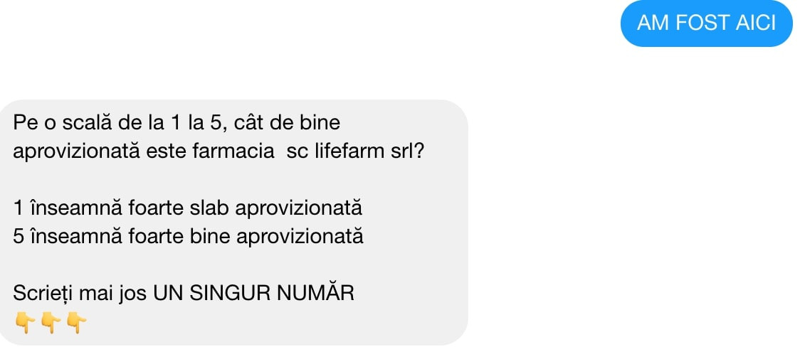 După selectarea produsului, utilizatorilor le sunt indicate farmaciile în care îl pot găsi, iar după câteva ore sunt întrebați, în mod automat, dacă au găsit produsul respectiv în farmacia sugerată.