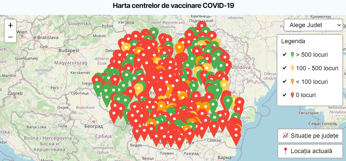 Cele mai multe locuri apăreau disponibile în județul Suceava, cu 11.950 de locuri, urmat apoi de Arad, cu 9.851 de locuri și Timiș, cu 8.785, potrivit datelor prezente în platforma de vaccinare.