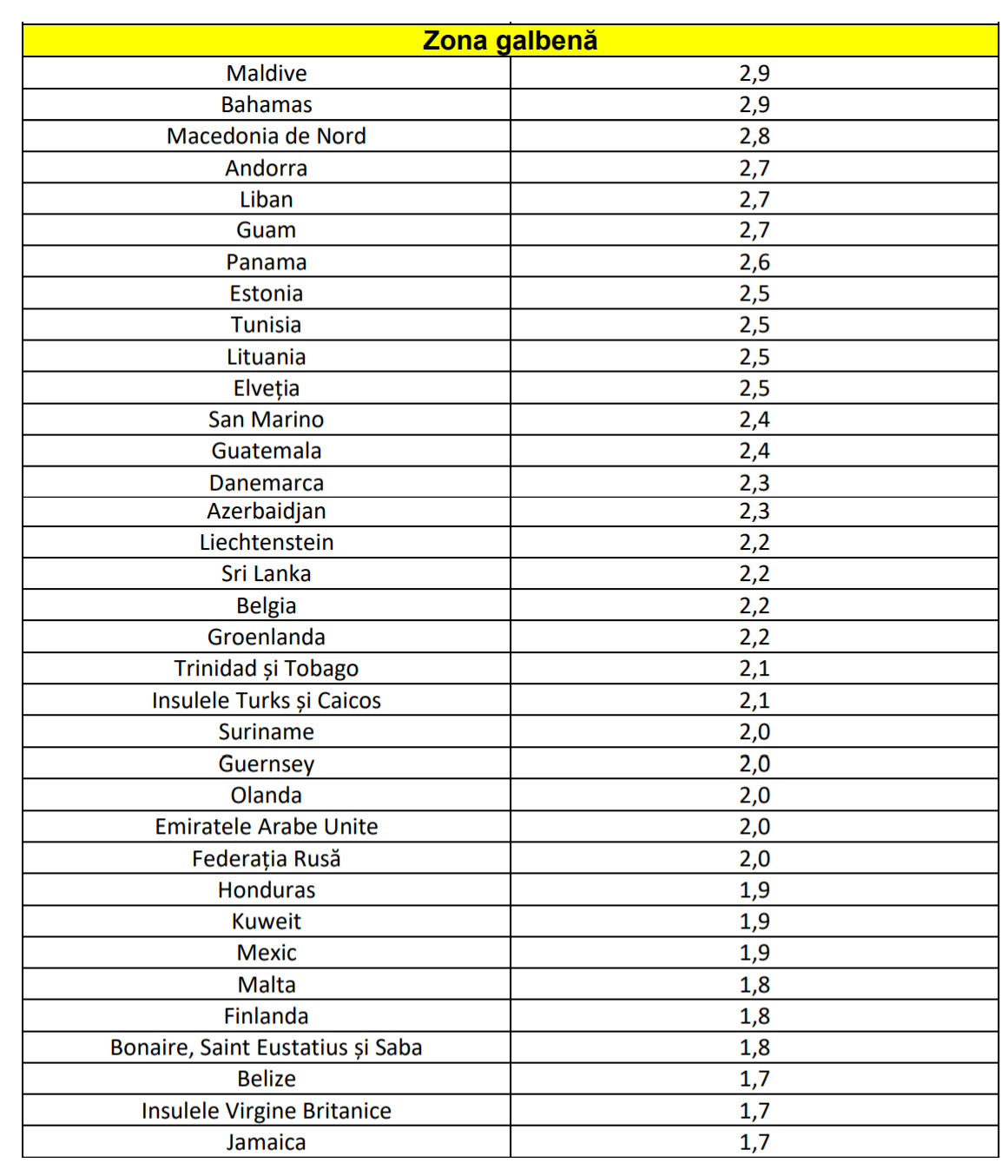 Pe lista galbenă se află alte țări pe care românii le accesează destul de frecvent, fie pentru că acolo au rude și prieteni, ori pentru că merg în vacanță.