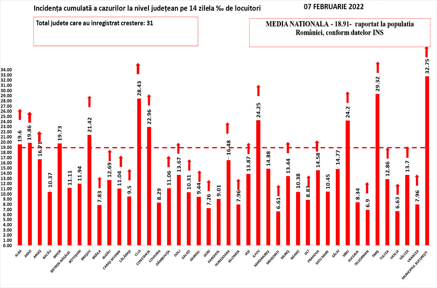 *Referitor la „cazurile noi nealocate pe județe”, facem precizarea că numărul acestora este determinat de modificările aduse platformei electronice prin care sunt raportate și centralizate rezultatele testelor pentru noul coronavirus. Astfel, conform noii metodologii, centrele de testare introduc în mod direct rezultatele testelor realizate, urmând ca de la nivelul Direcțiilor de Sănătate Publică să fie realizată ancheta epidemiologică și atribuite cazurile pozitive județului/localității de care aparțin persoanele infectate.