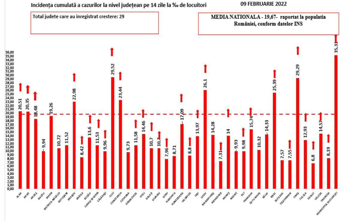 | 44. | Cazuri noi nealocate pe județe | 26.461* | -5373 | |