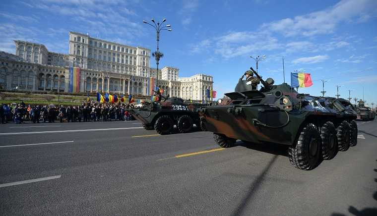 Parada incepe, iar prin fata celor peste 10.000 de persoane adunate in Piata Constitutiei se perinda rand pe rand detasamentele din Fortele Armate Terestre, Aeriene, Navale, dar si din Ministerul Afacerilor Interne. Primii care apar sunt infanteristii “Scorpionii Rosii” din Craiova, urmati de militarii Comandamentului Diviziei Multinationale de Sud-Est a Aliantei Nord Atlantice, aflati pentru prima data la parada. Iar sirul de barbati si femei in uniforme continua sa apara timp de jumatate de ora. Sunt si militari ai armatelor Republicii Moldova, Poloniei, Turciei si ai Statelor Unite ale Americii si Bulgariei, fortele pentru operatii speciale, detasamentul Fortelelor Aeriene, urmati de Fortele Navale, militari de la bordul navelor militare, jandarmi, polisti din Ministerul Afacerilor Interne, pompieri, echipaje SMURD si salvatori la inaltime. In tot acest timp, cei aflati in primele randuri profita de ocazie si isi fac poze cu militarii care defileaza. ”Nu ai cum sa nu faci macar o poza, ce pui pe Facebook?” explica un tanar.