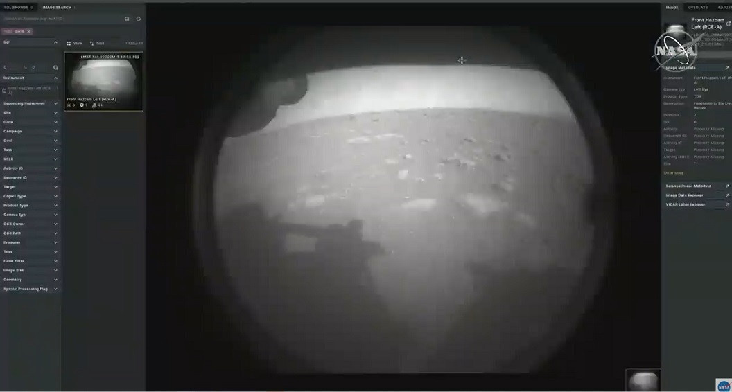 Prima fotografie trimisă de Perseverance este una alb-negru, cu mici detalii din fața roverului. Nu este cea mai calitativă, dar marchează un moment important: cel mai inteligent rover a atins solul extraterestru. Unul dintre motivele pentru care fotografiile nu au cea mai mare calitate este din cauza prafului de pe Marte. Pentru a proteja lentilele camerelor, inginerii sunt nevoiți să echipeze roverul cu multe filtre care să împiedice praful marțian să afecteze camerele instalate pe Perseverance.