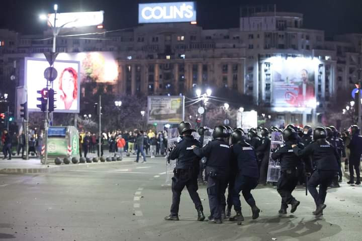 În seara zilei de 29 martie, grupuri de oameni au protestat în mai multe orașe din țară, inclusiv în Capitală. Protestul din București a fost pașnic pentru început, însă spre finalul acestuia, în jur de 300 de oameni au devenit violenți și recalcitranți. Jandarmii au încercat să îi legitimeze, însă 12 dintre aceștia au fost răniți, trei jandarmi ajungând la spital, pentru îngrijiri medicale.