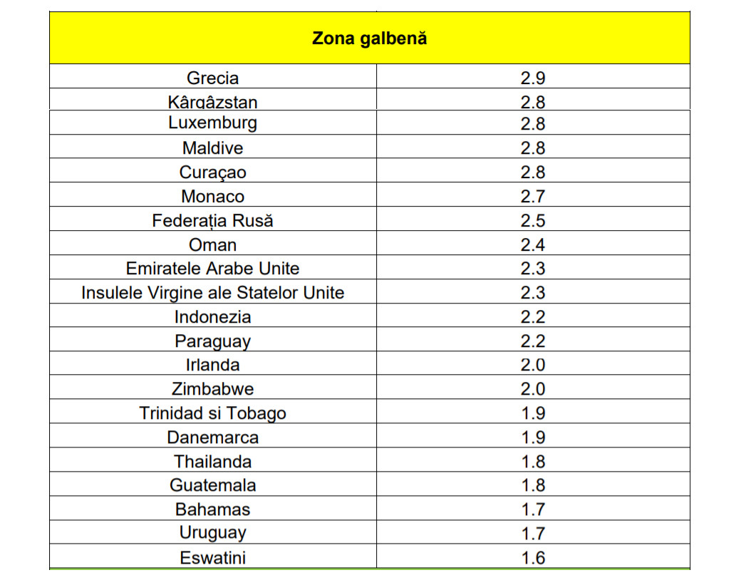 În urma analizei autorităților, Spania, Portugalia și Marea Britanie au rămas pe lista roșie, în timp ce Grecia a fost păstrată pe lista galbenă.