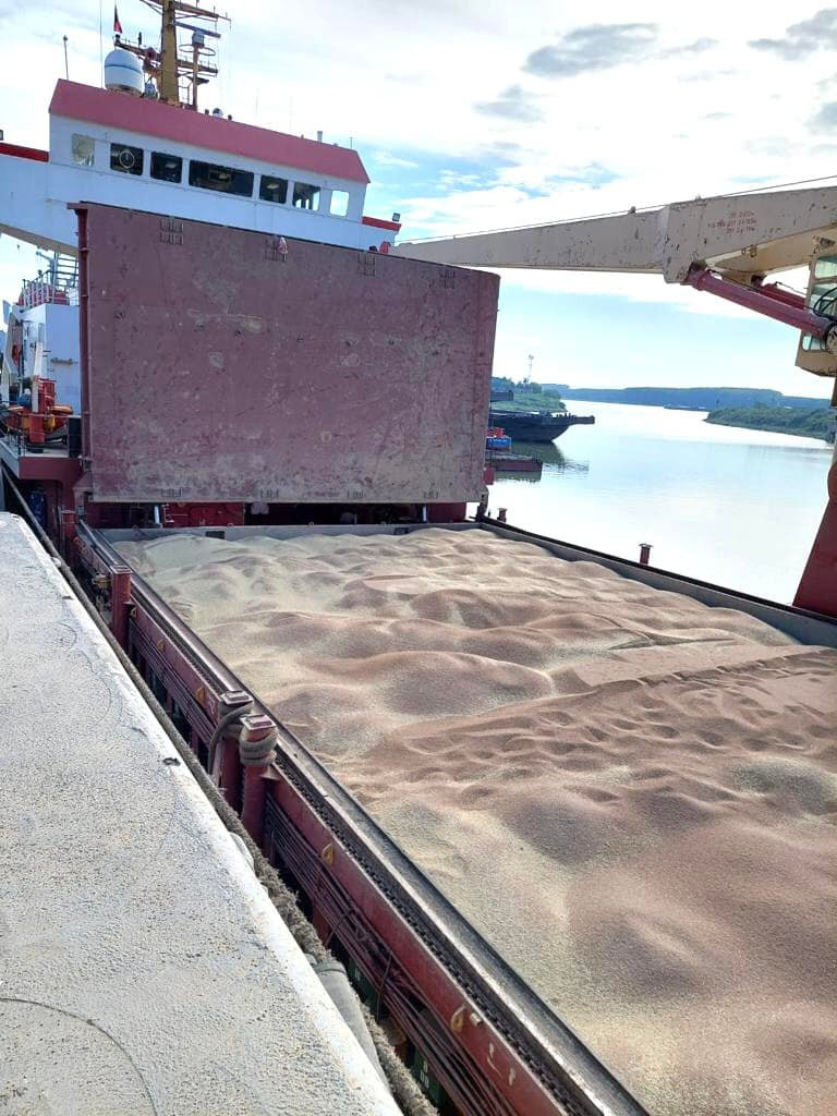 Nava a fost încărcată cu 4.200 de tone de grâu aduse din Ucraina pe calea ferată cu ecartament larg, inclusiv pe porțiunea de aproape 4 kilometri reabilitată în această vară, care permite trenurilor să ajungă direct în port.