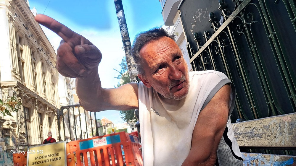 Mi-au luat și banii și mâncarea. Nu îi interesează că ești amărât, îi interesează să aibe profit. Cu poliția nu am probleme, sunt foarte ok, mă știu de atâția ani. Am prins două ierni în stradă, și pe frig și pe ger. Pun pe mine acolo două-trei pături, mă trezesc ud, aia e. Viață de stradă. E foarte greu.
