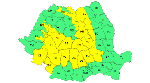 Care sunt județele afectate de avertizarea meteo?