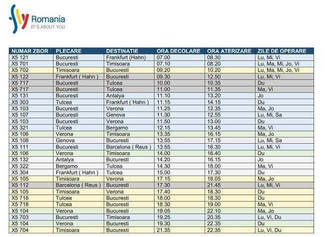 Zborurile Fly Romania pe ruta Timisoara - Bucuresti vor avea o frecventa zilnica exceptand ziua de sambata, iar Tulcea - Bucuresti de trei ori pe saptamana.