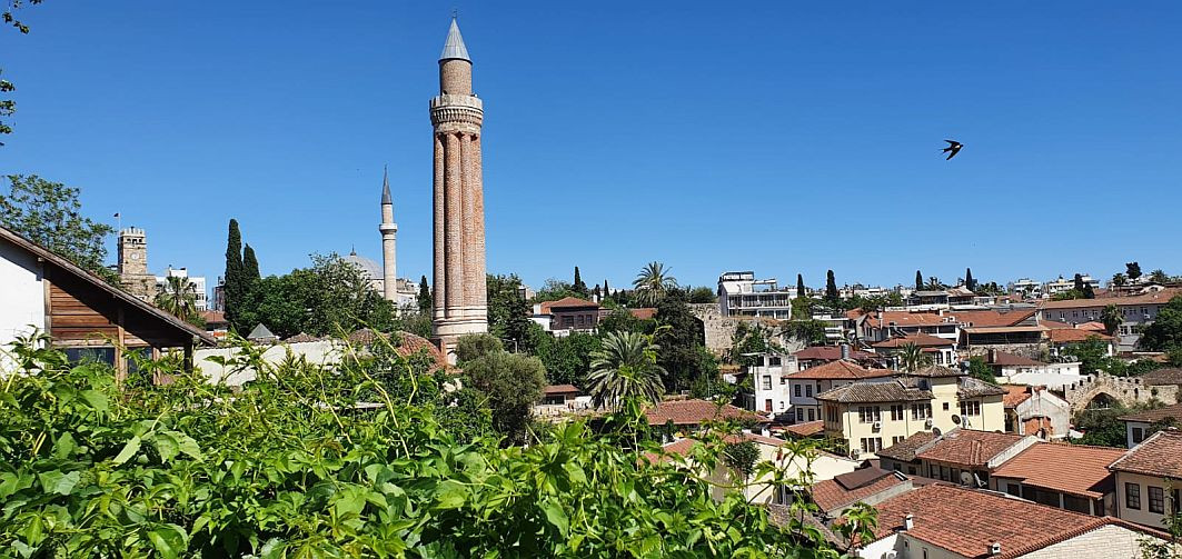 Cel mai important punct de reper al Antalyei îl reprezintă minaretul Yivli Minare, construit de sultanul Seljuk Alaeddin Keykubad. Minaretul este un exemplu tipic al arhitecturii Seljuk, cu o bază pătrată suprapusă printr-un tambur octogonal purtând arborele înclinat, cu galeria sa coroborată în jurul vârfului. Moscheea atașată din secolul al XIV-lea este funcțională și astăzi. Minaretul este chiar lângă poarta de intrare Kale în orașul vechi.