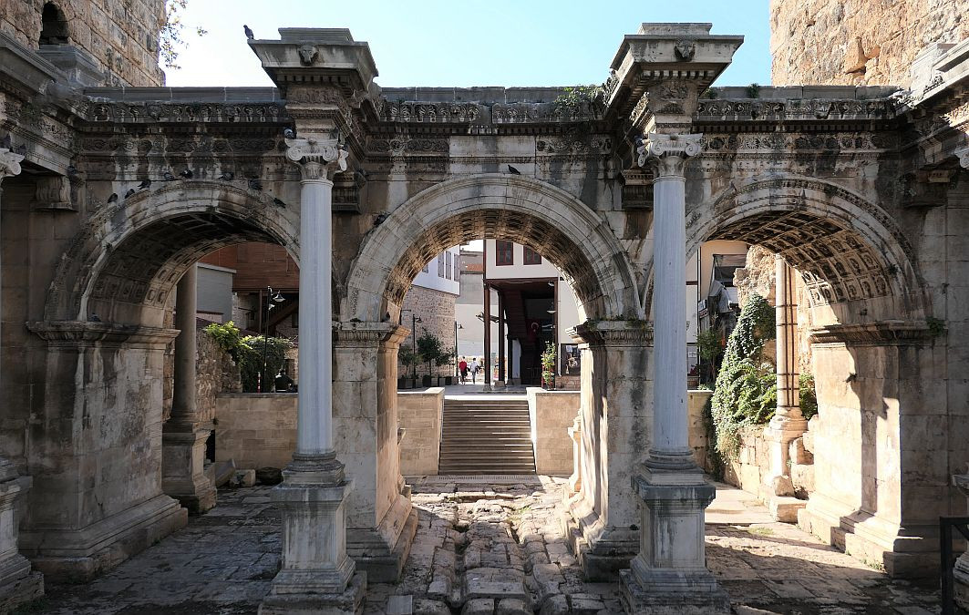 Poarta lui Hadrian este un arc de triumf construit după ce în anul 130 împăratul roman Hadrian a vizitat Antalya. Monumentul antic este amplasat în partea estică a orașului vechi și este parte componentă a zidului de apărare ce împrejmuia orașul în perioada elenă și romană. Edificiul este destul de bine conservat fiind în continuare folosit pe post de portă, care duce spre Kaleiçi, orașul vechi, dar și spre Hesapçi Sokak.