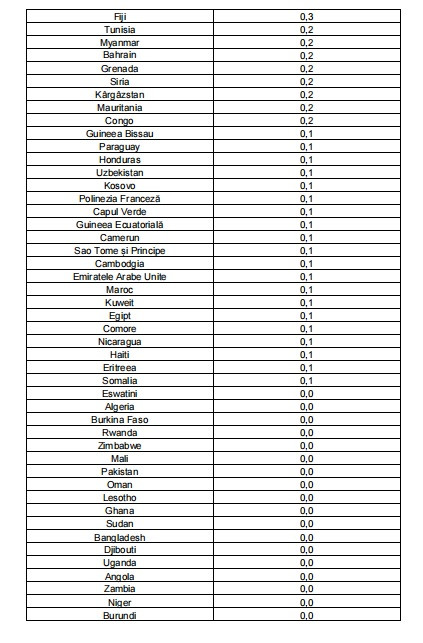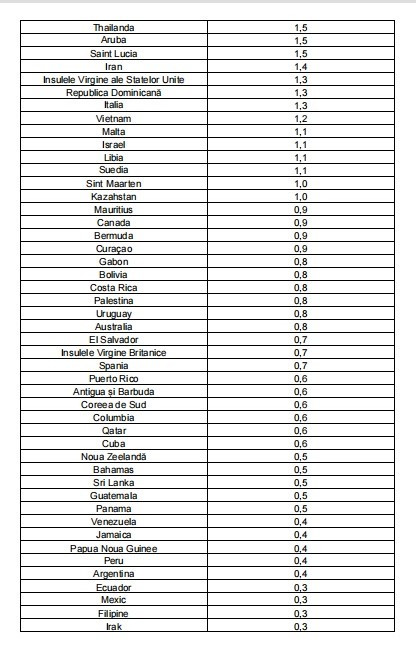 În zona verde au intrat: Thailanda, Iran, Aruba și Saint Kitts și Nevis.