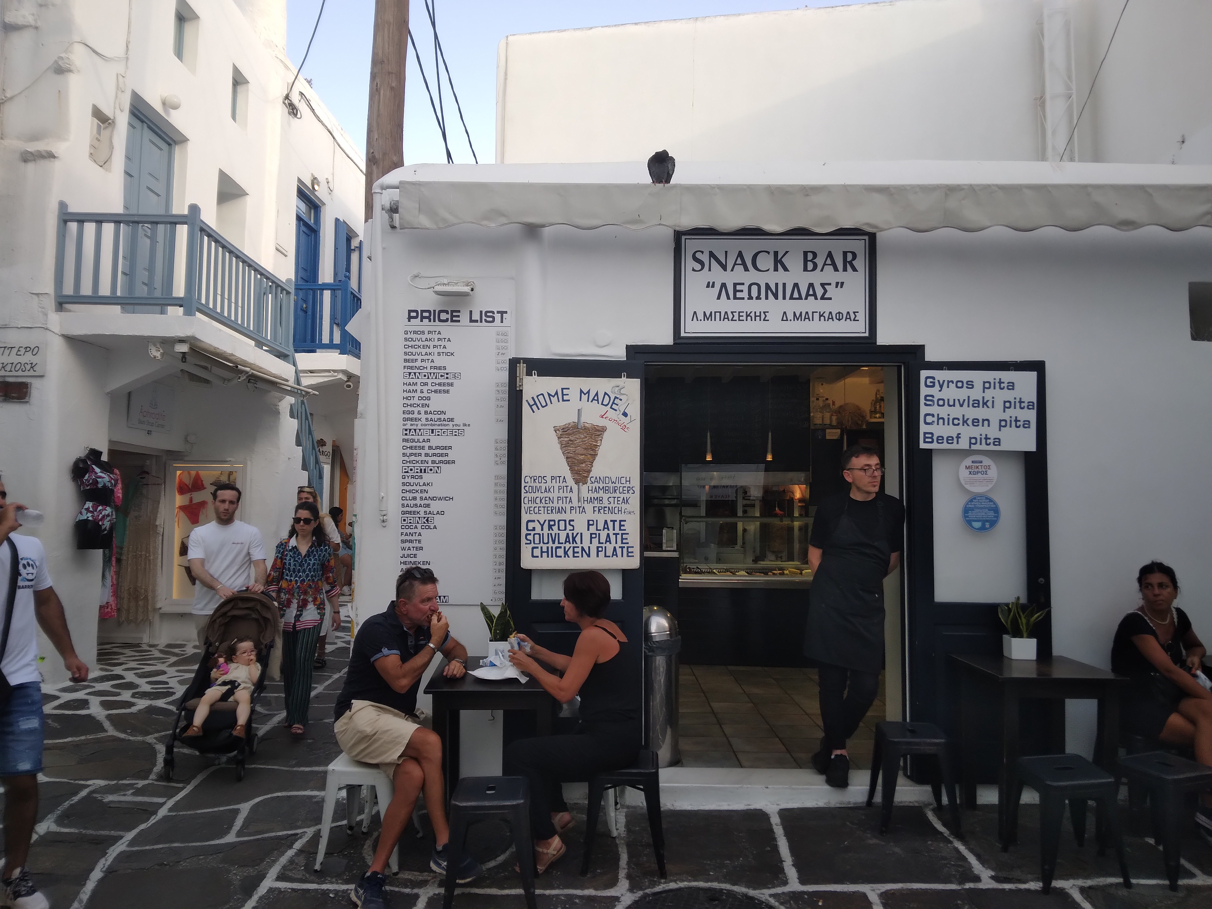 Deși e cea mai scumpă insulă a Greciei, mai găsiți câteva locuri în care să mâncați un fel de mâncare cu 4 euro, iar prin fel de mâncare fac referire la Pita Gyros, destul de sățios, aș zice eu.