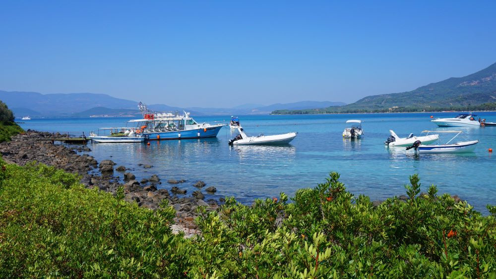 Insulele pot fi accesibile prin excursii cu barca care operează din portul Kavos din Evia.
