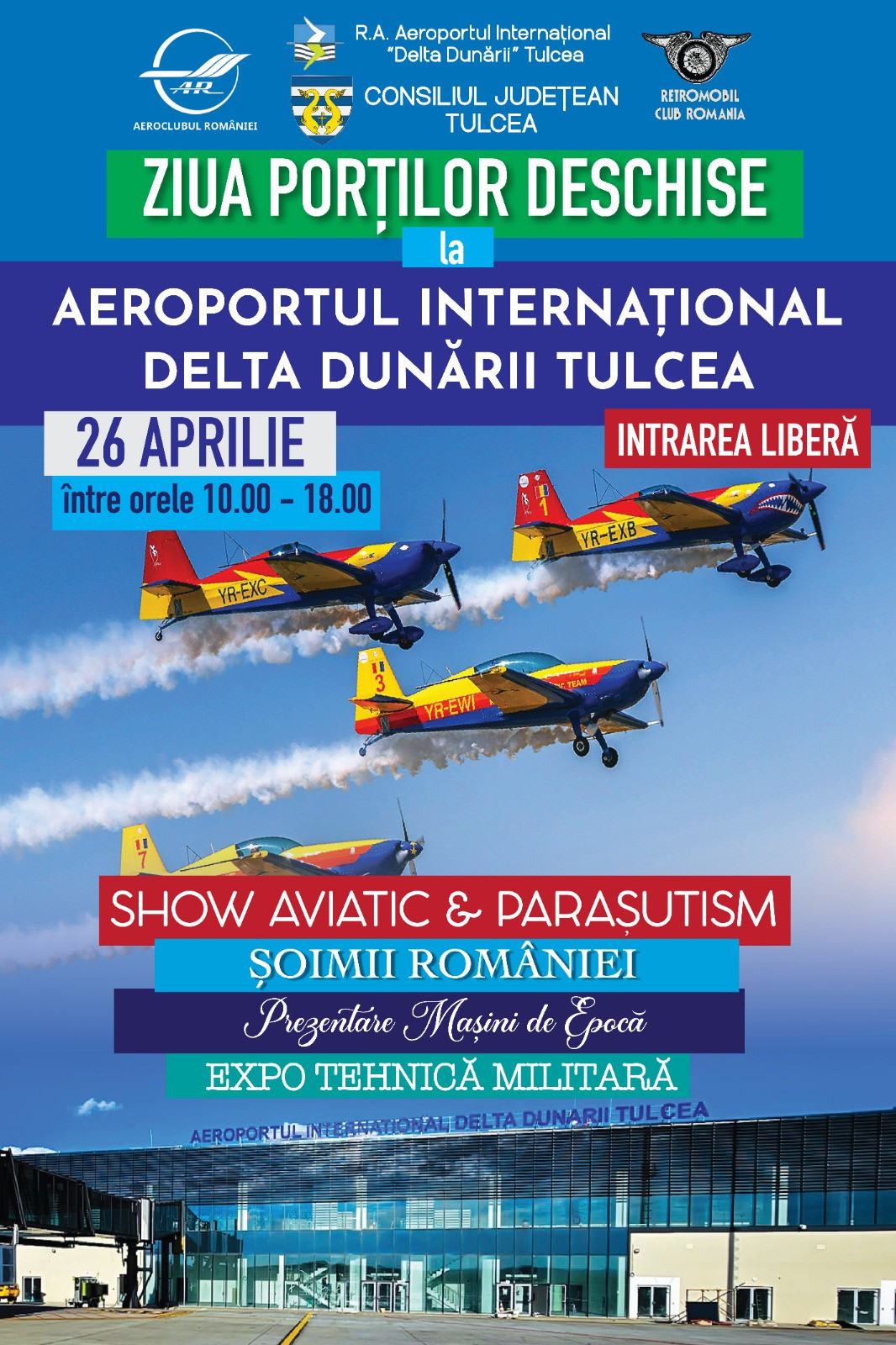 Astfel, invitații vor avea ocazia să viziteze noul terminal și să se bucure de o expoziție de tehnică militară, la care își vor da concursul principalele instituții militarizate din județul Tulcea, fiind pregătită și o prezentare de mașini restaurate cu valoare istorică. Punctul culminant al evenimentului va fi un spectaculos show aviatic unde va evolua Aeroclubul României, prin Șoimii României - Hawks Of Romania, de la ora 16:00.