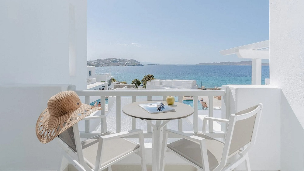 Dacă am pomenit de Santorini, nu puteam omite fratele său în lux, Mykonos. La Manoula’s Beach Mykonos Resort veți găsi camere mari cu vedere la mare și o locație foarte convenabilă.