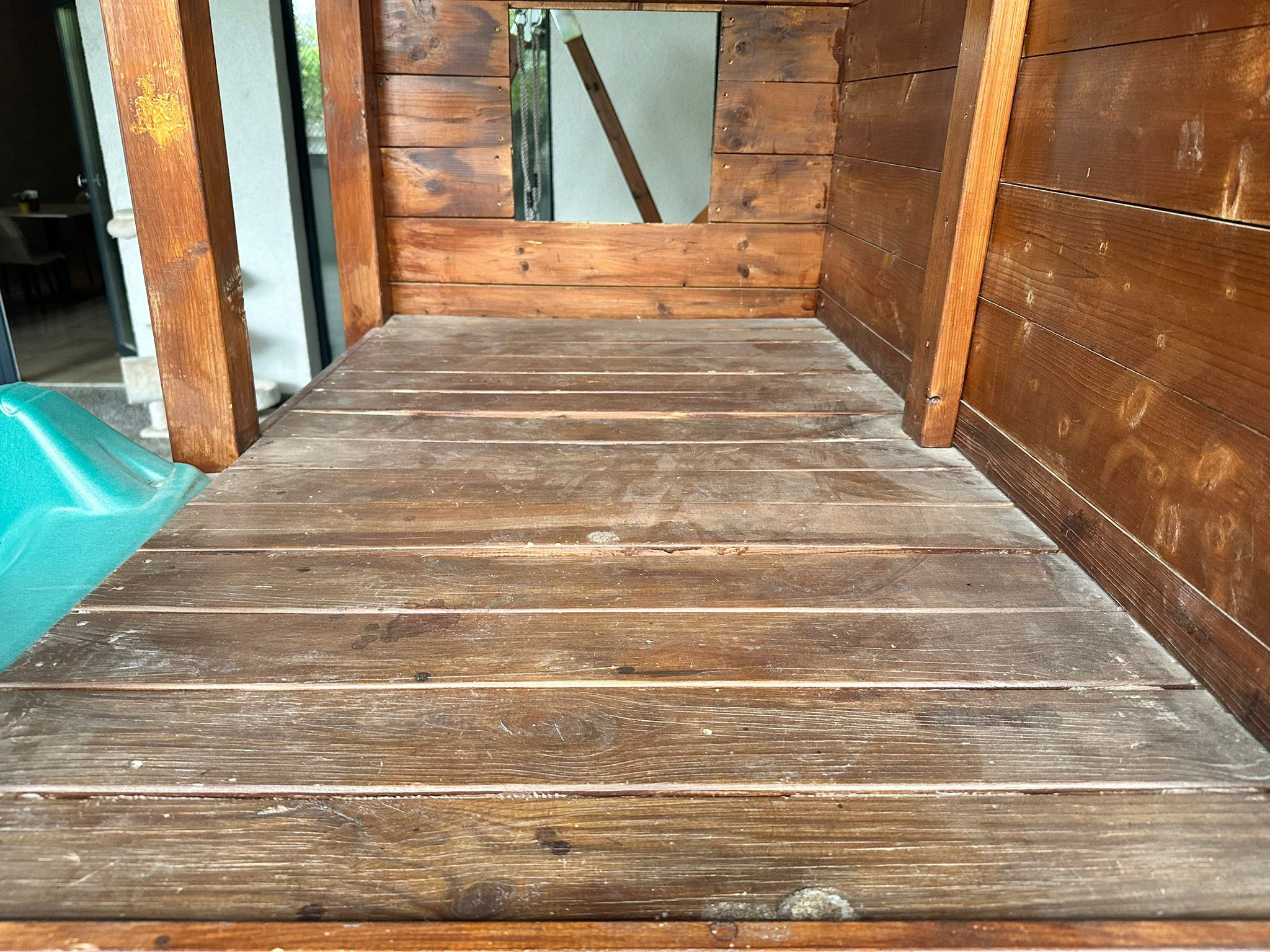 - *Echipamentul de joacă de pe terasa de la parter* era neigienizat, prezentând pete de rugină, pânze de păianjen și acumulări de impurități.