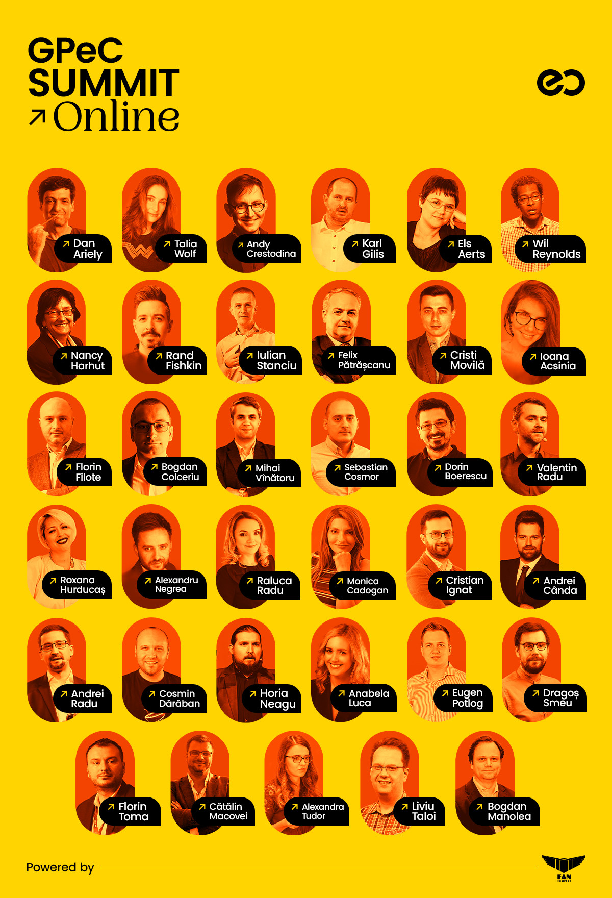 Peste 30 de speakeri internaționali și români vor urca pe scena virtuală a GPeC SUMMIT Online, iar potrivit organizatorilor “este cel mai bun line-up din istoria GPeC din cei 15 ani”.