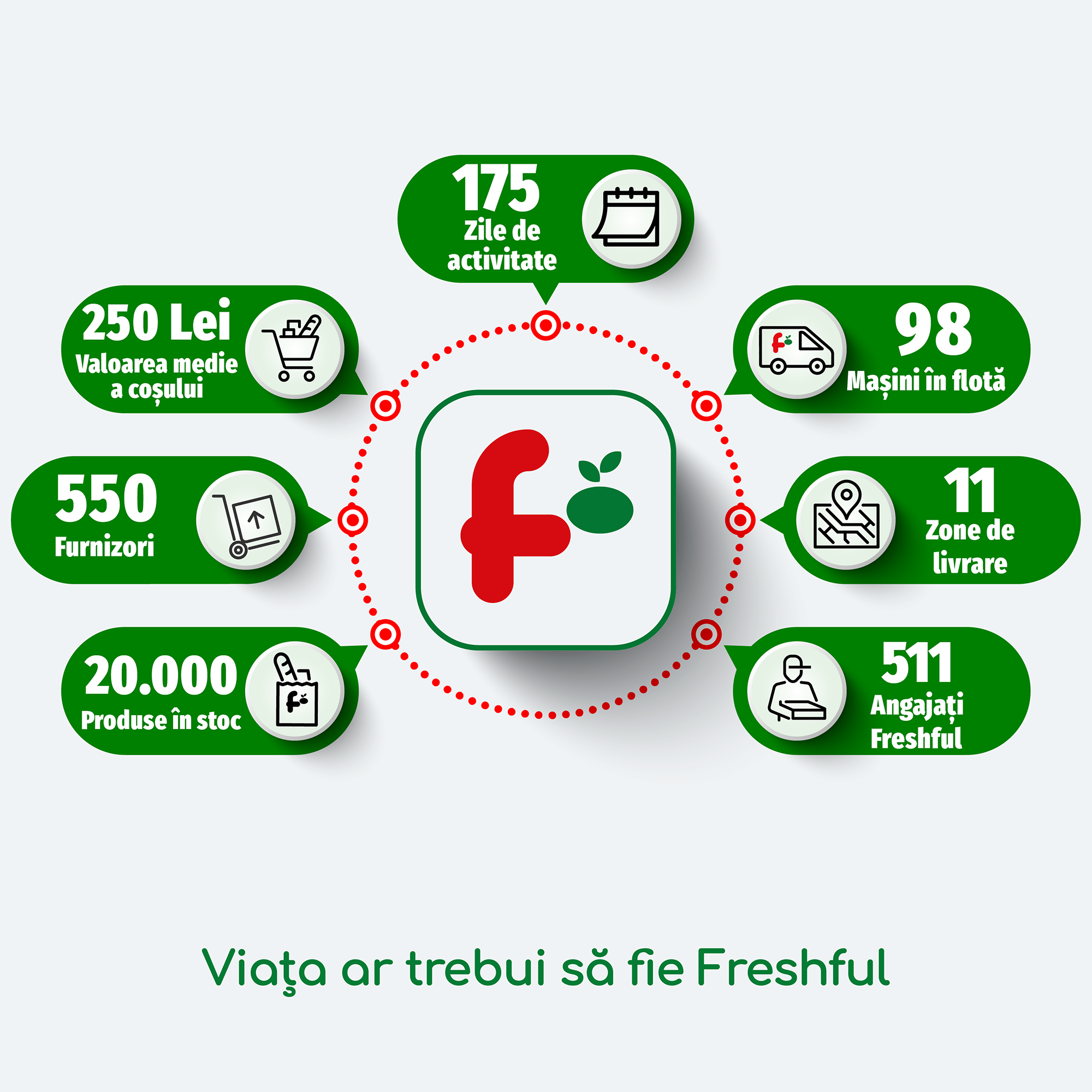 Echipa de management Freshful by eMAG a făcut un bilanț, la 6 luni de activitate. Este primul - și singurul - magazin 100% online din România care livrează produse alimentare, iar livrarea poate fi programată, momentan în București și mare parte din Ilfov.
