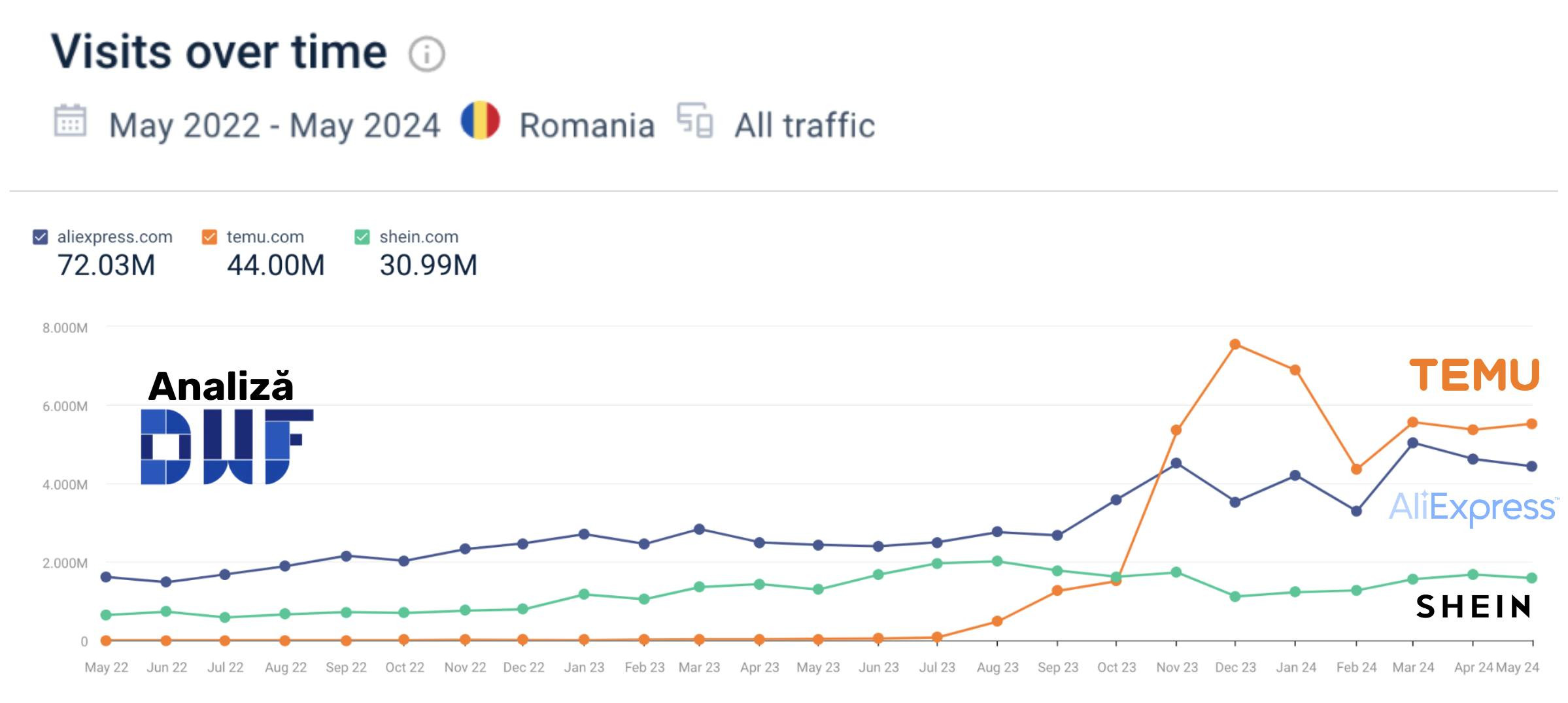 Platformele de comerț online din China au un impact din ce în ce mai mare asupra comerțului online local. Dacă în ultimul timp acest lucru era evidențiat de diversele declarații din industria logistică, care făceau referire la sute de mii de colete care intră zilnic în țară din China, avem de această dată și cifre din zona de digital marketing. Mihai Vînătoru, managing partner al agenției de digital marketing DWF, a publicat o serie de observații din cea mai recentă analiză de piață pe care DWF o realizează, iar creșterea platformelor chinezești este una destul de mare.