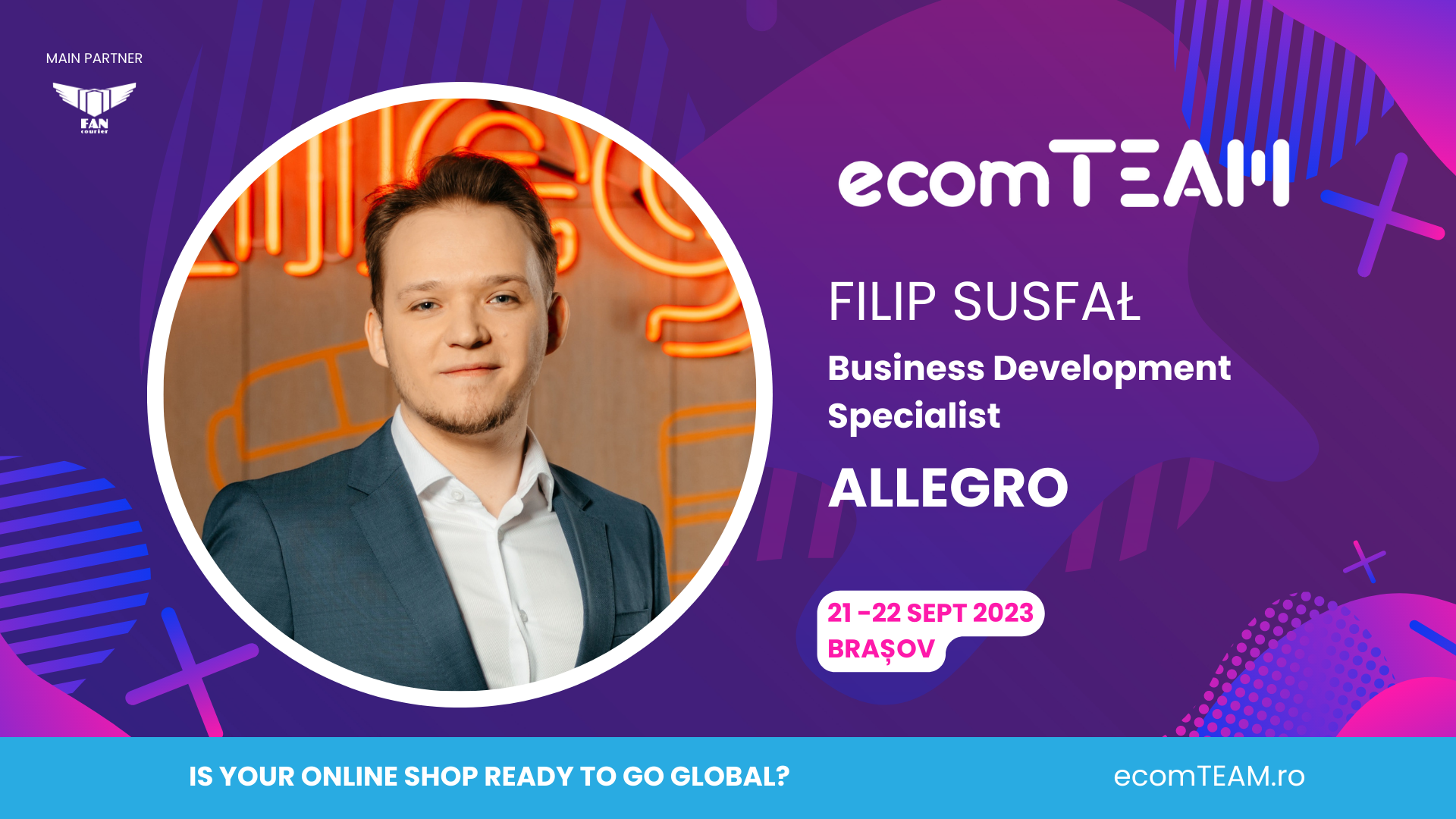 Filip Susfal, Business Development Specialist Allegro, este un alt speaker internațional ce va urca pe scena evenimentului. Compania poloneză Allegro administrează una dintre cele mai mari platforme de e-commerce la nivel global și este cel mai cunoscut brand polonez când vine vorba de comerț online.