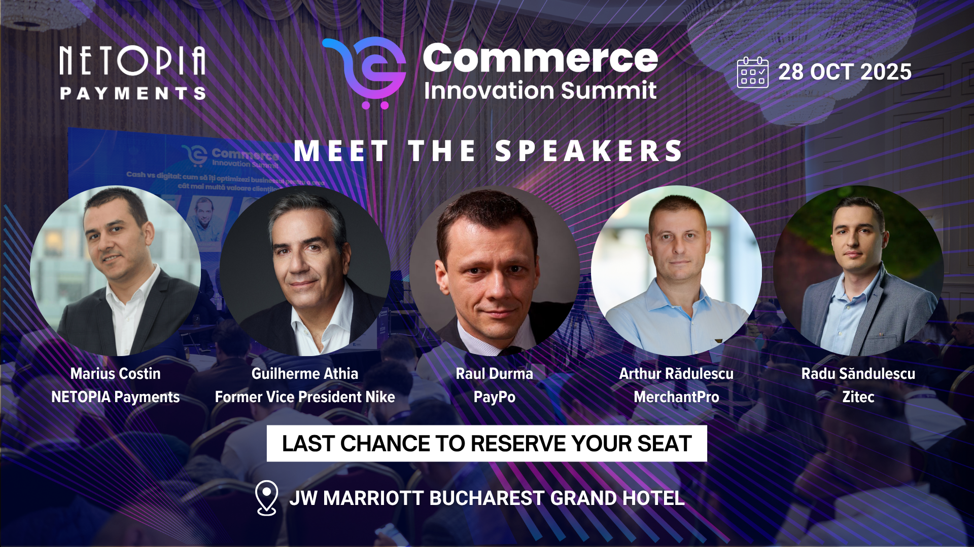 Pe 28 octombrie 2025, la București, are loc Commerce Innovation Summit by NETOPIA Payments, evenimentul care reunește lideri din eCommerce, fintech și tehnologie pentru o zi dedicată strategiilor, ideilor și soluțiilor care definesc noua eră a comerțului digital.