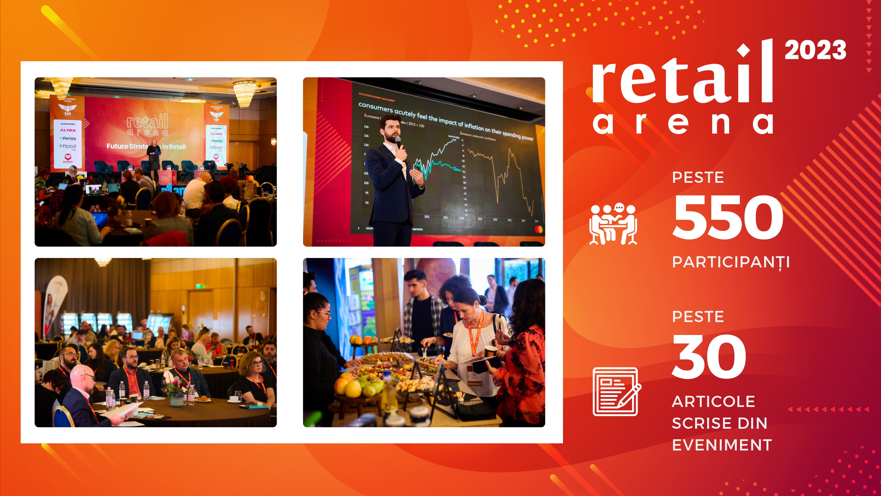 Pe 25 și 26 octombrie 2023, retail.ro și Wall-Street.ro au organizat retailArena, eveniment cu istorie, ajuns la cea de-a unsprezecea ediție. În cele două zile ale conferinței s-au succedat speakeri de renume, naționali și internaționali, expozanți, prezentări și paneluri de discuție care au condus la cifrele exemplificate mai jos.