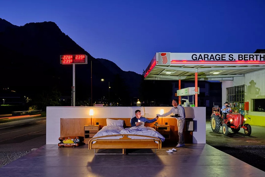 În timp ce unele camere sunt situate în pajiști alpine liniștite, altele sunt locuri „anti-idilice”, cum ar fi lângă benzinării, pentru a stimula reflecții mai profunde despre creșterea prețurilor și alte probleme sociale.