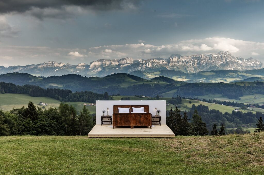 Marca Zero Real Estate este un concept artistic elvețian care prezintă un pat dublu în aer liber, fără tavan sau pereți. Acesta își propune să încurajeze oaspeții să reflecteze asupra problemelor globale și a schimbărilor sociale.