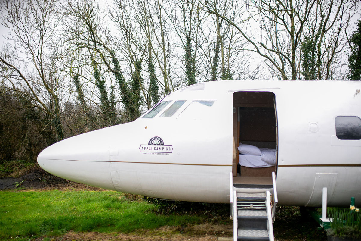 Apple Camping, în Pembrokeshire, Țara Galilor, oferă o experiență neobișnuită de glamping, cu o serie de opțiuni de cazare reutilizate, cum ar fi un container maritim și un vagon de tren.