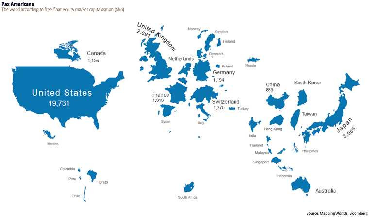 Iar in ceea ce priveste teoria potrivit careia o tara poate avea o economie dezvoltata fara existenta unei burse dezvoltate, nu trebuie decat sa aruncati o privire pe imaginea de mai jos, care reprezinta o harta a lumii in care tarile sunt scalate in functie marimea propriilor burse. Coincidenta sau nu, cele mai mari economii din lume au in general si cele mai dezvoltate piete de capital, China fiind singura care iese din tipare.